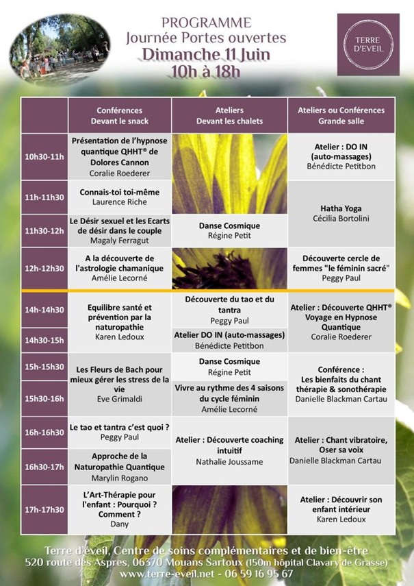 Le mois de Juin a commencé par une conférence pendant une journée portes ouvertes (11 Juin) suivi par un weekend Yoga (17-18 Juin) où j’ai fait mon tout premier atelier de visualisation de « l’énergie du dragon ».